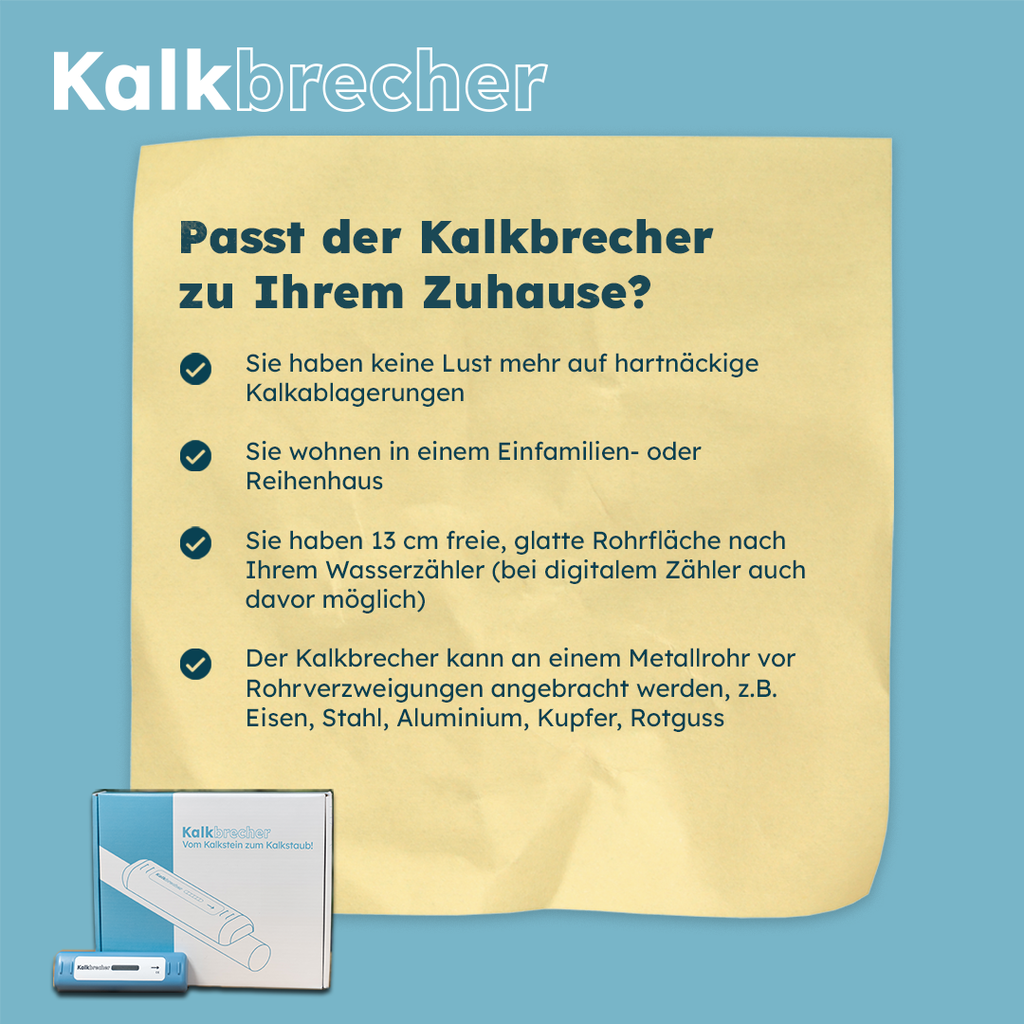 Wir sind von unserem Produkt überzeugt und bieten Ihnen mit unserer einjährigen Geld-zurück-Garantie die Möglichkeit, den Kalkbrecher völlig risikofrei zu testen. Wenn Sie nicht zufrieden sind, erstatten wir Ihnen den vollen Kaufpreis.