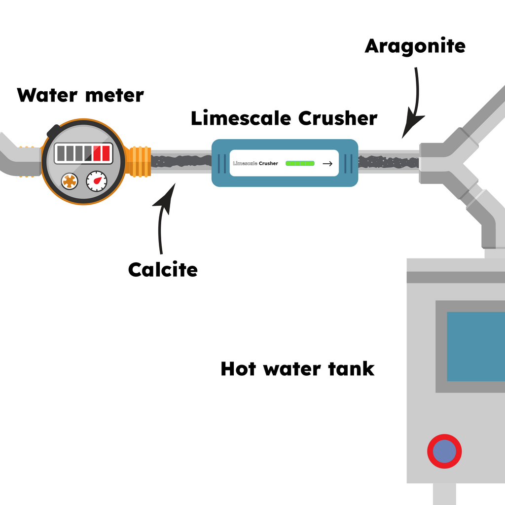 Das reicht aus, um die Kristallbildung von Kalk als Aragonit (Kreide) und nicht als Calcit (Kalkstein) zu bewirken. Aragonit hat eine eher pulverartige Struktur, wodurch es sich deutlich weniger in Rohren und Geräten absetzt und die Reinigung wesentlich erleichtert.